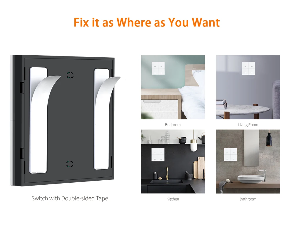 Scene switch is a time and energy-saving alternative to the traditional hard-wared switch.the push button it can be stick on the wall or put it everyever you like.